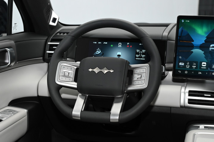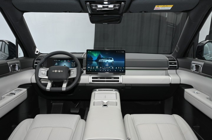 值得注意的是,新车细节设计也是进一步强化硬派属性:前脸贯穿式 LED 灯带与方形灯组呼应,车身侧面同色轮眉、固定式踏板与 19 英寸多辐轮毂搭配,隐藏式 B 柱营造悬浮车顶视觉效果。尾部外挂式“小书包”储物箱与侧开尾门属于标志性设计。而4999*1995*1865毫米的车身尺寸搭配 2920毫米轴距,更加营造出魁梧气场。